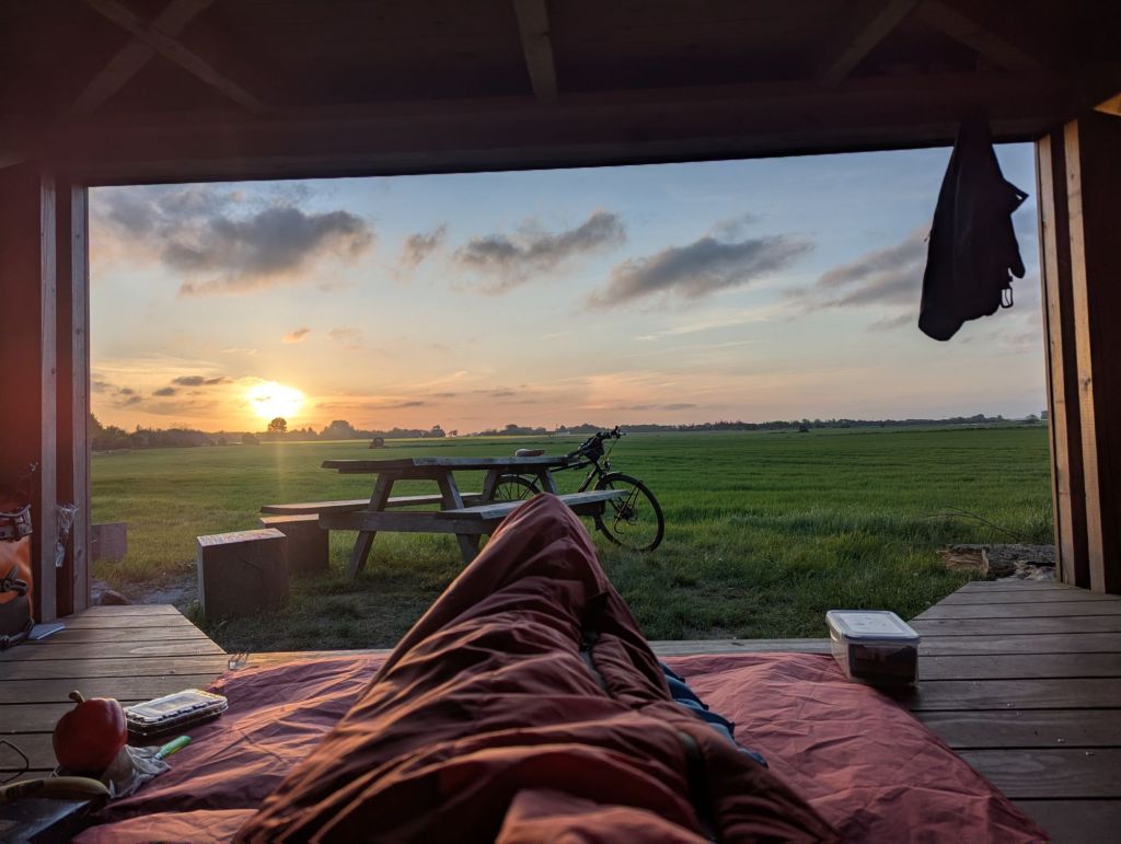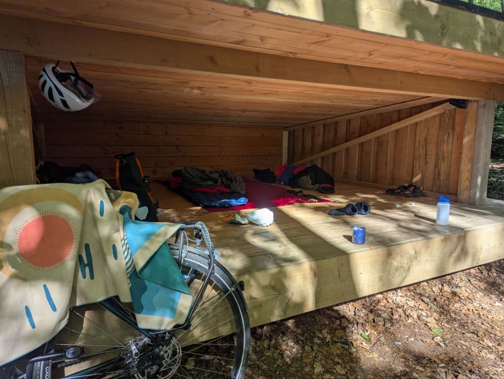 With every intention of finding a spot to pitch the tent, on a rural road junction I stumbled upon the Rolls-Royce of bus stop shelters: fully enclosed at one end with double glazed windows, chairs and a bench. I know it’s a bit cheeky, but with the buses long since parked up for the night I couldn’t resist the convenience. The issue with this strategy is that if the shelter is a little bit too comfortable, you’re less likely to be up and gone before society springs back to life. So Anna if you’re somehow reading this: I hope you got to school ok, and well done for choosing archery instead of rock climbing like all the other kids at summer camp; it’s important to do what makes you happy, rather than following the crowd.
