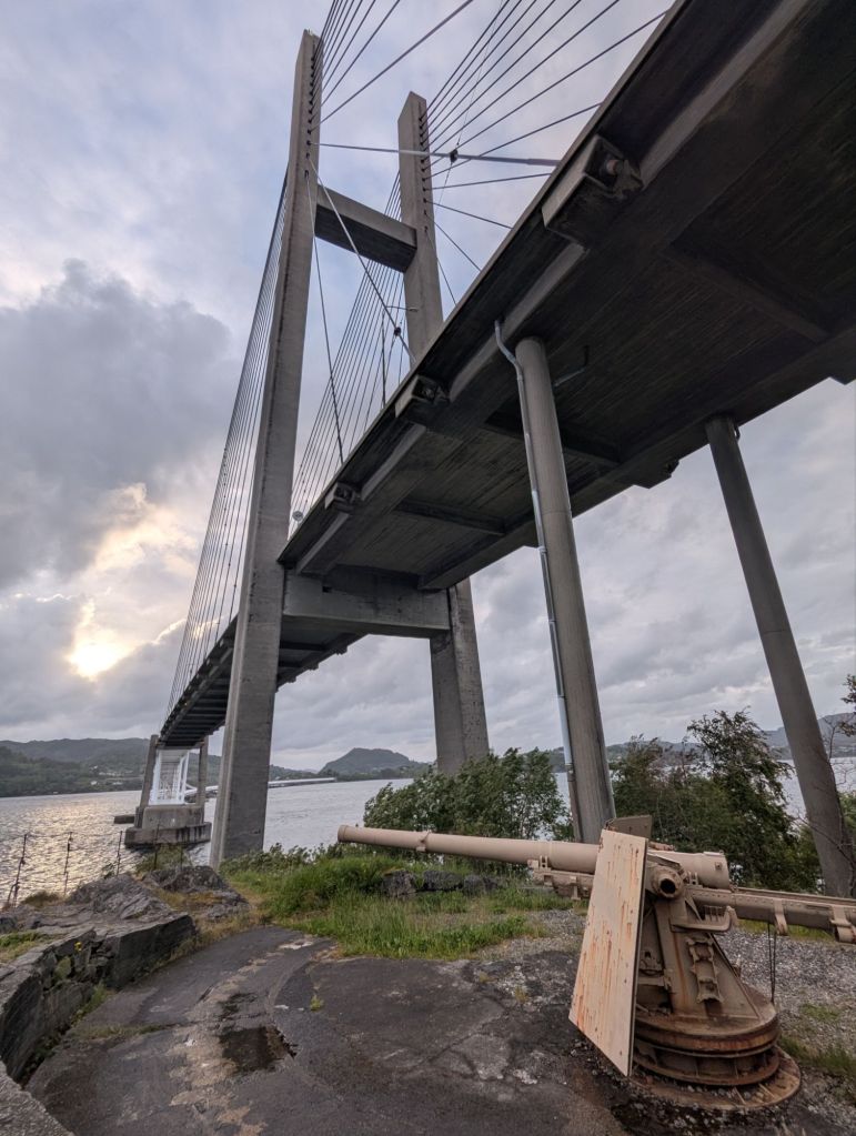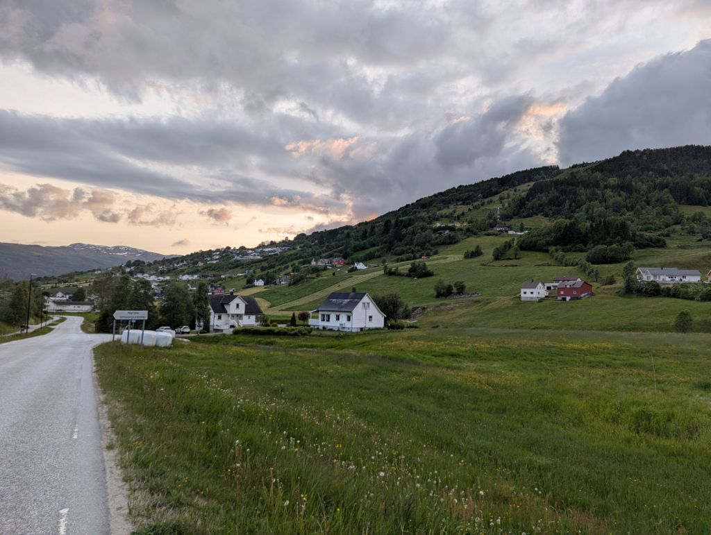 After all the fiddling and tweaking I didn’t manage to escape Bergen until 6pm, so it was another evening ride on the cards. Once free from the urban sprawl on Bergen’s north side there are a couple of road bridges linking to the small town of Knarvik. 3D road designs never come across that well on 2D maps and I briefly ended up underneath the larger bridge at dead end where a campervan and cyclist in a small green tent were bedding down for the night. It was 9pm and the night was young, so I carried on.