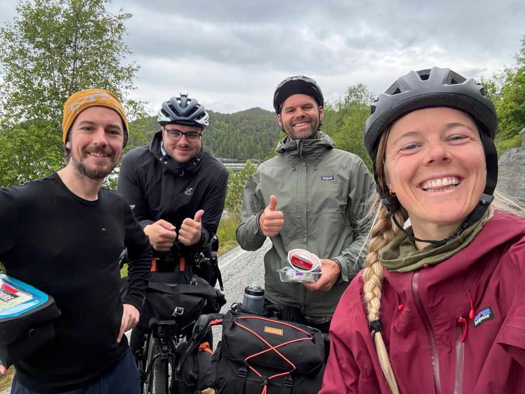 That day we rode as a quad along EuroVelo 1 as the terrain slowly became steeper, more dramatic and wild as we approached the mouth of the mighty Sognefjord, Norway’s longest and deepest fjord. The route climaxed with the largest most difficult climb of the entire tour to date, and poor Finn (who had ridden for longer than any of us and burned a lot of matches going quickly up the shorter climbs) was beginning to suffer. After a much needed descent to the ferry terminal we accidentally took the scenic route on our final crossing to Rysjedalsvika, before settling down on a patch of grass Jan had managed to find using an app for wild camping spots.