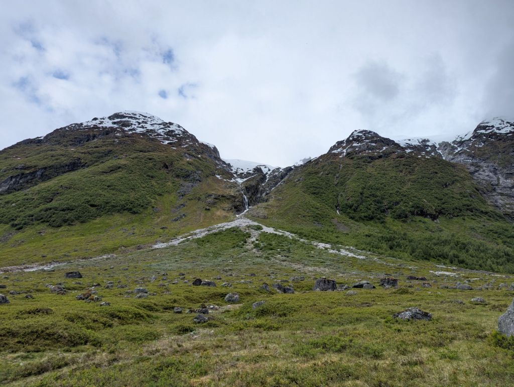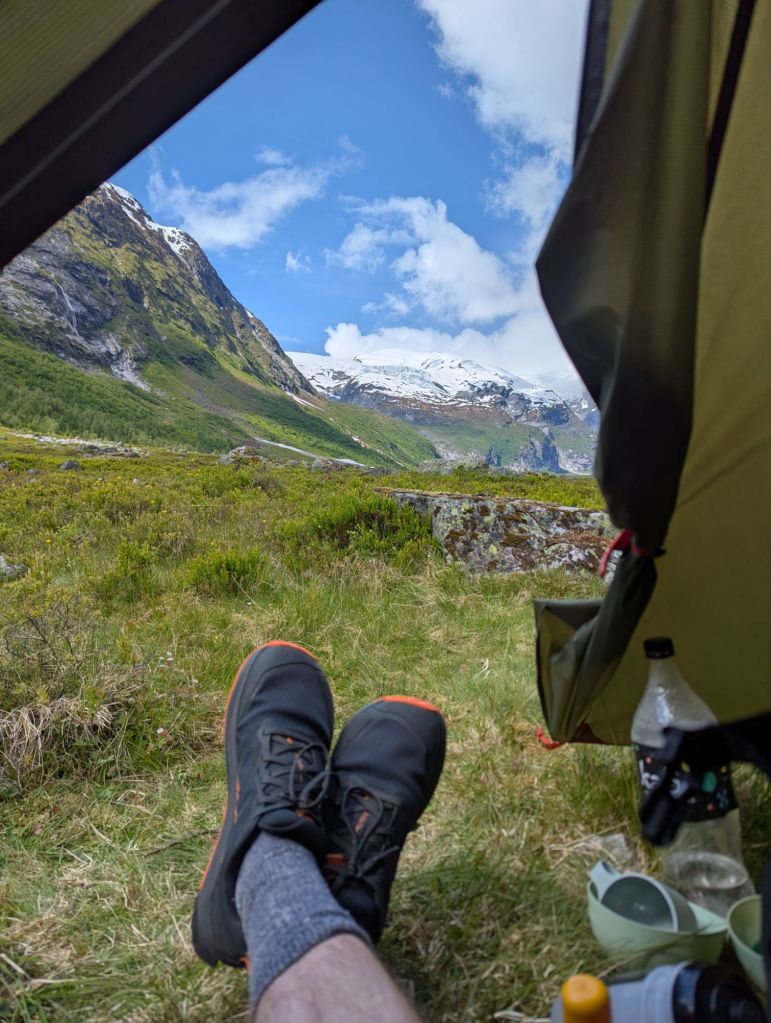 Let’s finish this section with a few photos, including from a five-hour trek up to see Austerdalsbreen glacier in the valley around the corner from where I camped. See if you can spot the tent in the first photo..