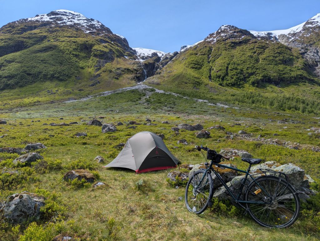 There was a solid block of three properly warm and sunny days on the forecast (25°C), which sounded like the perfect opportunity to wash my clothes at a campsite and lounge around in the sun whilst they dry. The difficulty was that – due to afformentioned restrictions on cycling through major tunnels – I was now marooned in Sogndal.